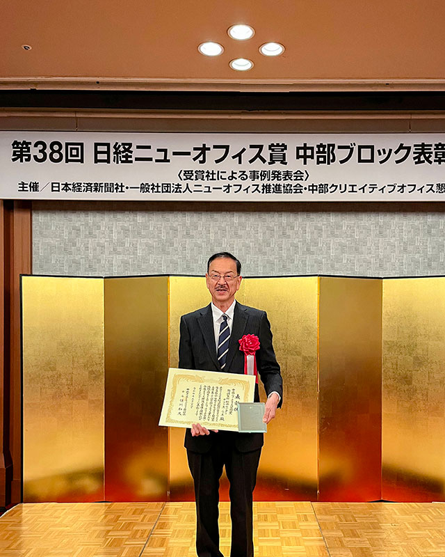 この度、当社の支店「オフィス・ラボ」が第38回 日経ニューオフィス賞「中部ニューオフィス奨励賞」を受賞し、中部ブロック表彰式にて表彰をしていただきました。