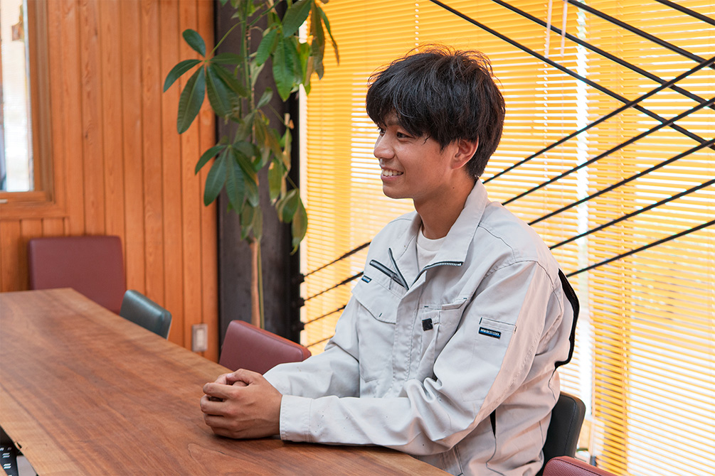 面接の前に一度会社を見学させてもらったのですが、その時に本社の部長と話がとても盛り上がって。話し込む中で、自分の考えていた「一人で何かを造りあげていくスタイル」が、この会社なら実現できると感じましたし、建築の工事に関わる部署もあるので、万が一合わないことがあっても、別の部署で自分の可能性を試せるかもしれないという安心感もありました。