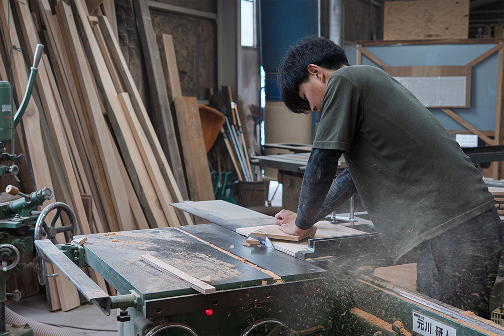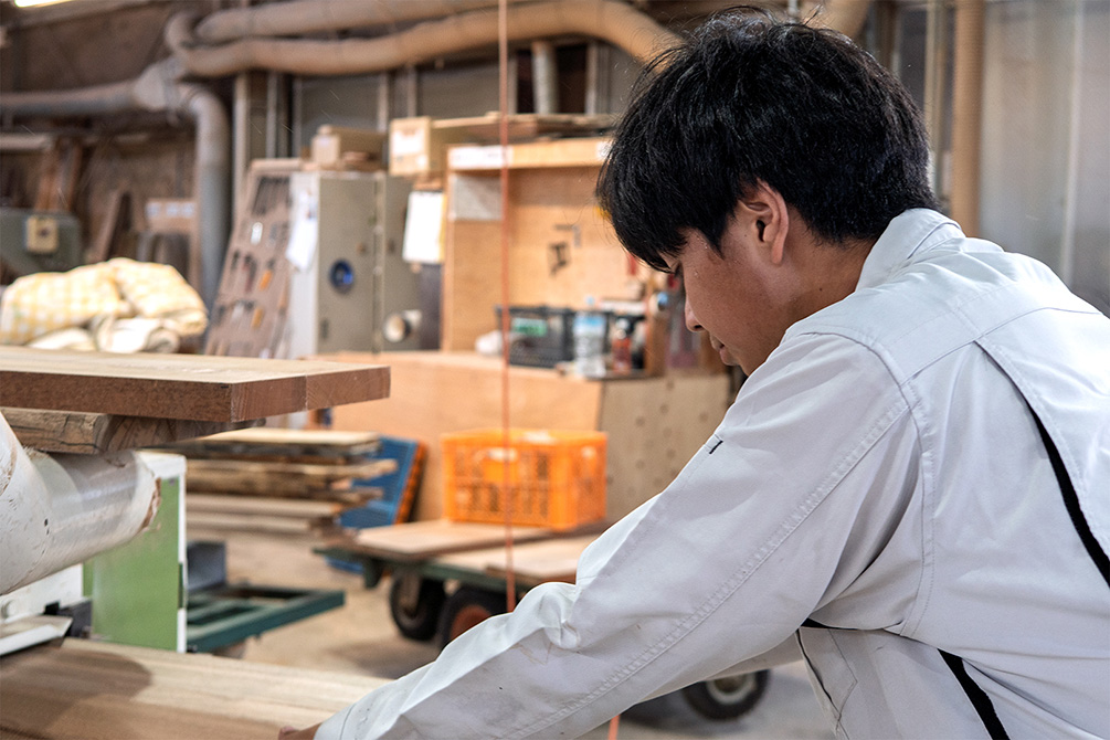 前職は建築関係で、大工の見習いをしていました。家を建てることにはひと通り関わったのですが、いろいろな関連会社が出入りする中で「自分で何かを完成させてみたい」という思いが強くなりました。そこで家具製作に興味を持ち、岡崎製材を知りました。特に、他社ではあまり見かけないような質の高い木材を扱っているところに惹かれました。