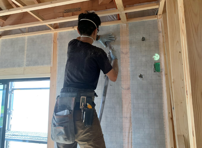優れた断熱性を持つセルロースファイバーを隙間なく吹き込むことで、夏は外部からの熱の進入を抑え、冬は室内の熱を逃しません。