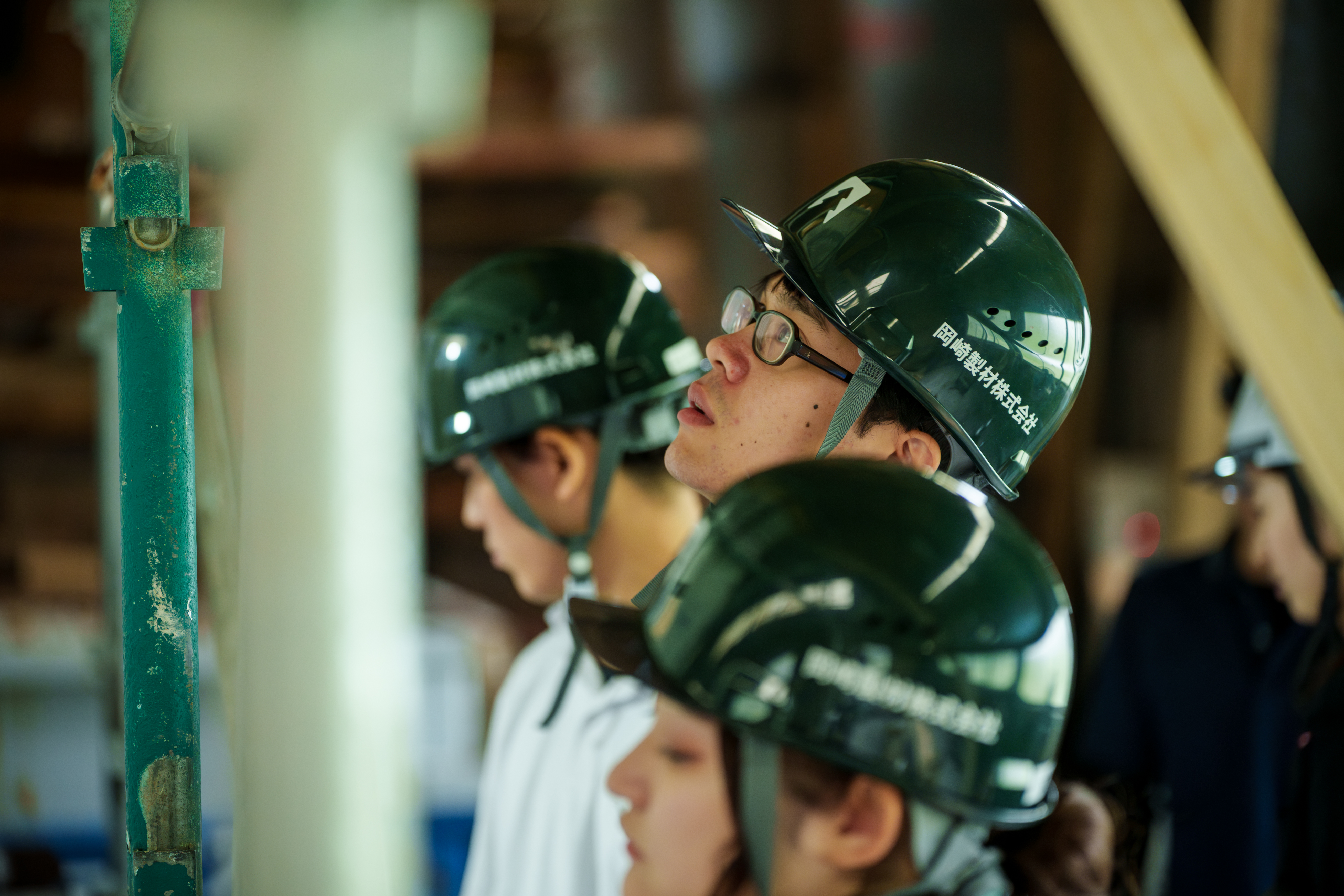 「一流の大工を育成する」ことを目指して独自の育成システムを構築し、自社のみならず地域の次世代大工の教育支援に尽力しているのが大工育成塾です。大工育成塾の最大の魅力は、同じ志を持った社内外の同世代の「仲間づくり」ができること。まさに、学校や部活のようなはつらつとした雰囲気で、参加者全員がいい顔をして取り組んでいます。建築業界にとって、大工をはじめとする建築職人は宝です。昨今、職人不足が深刻化する中で、次世代へ日本・地域の大切な建築文化や暮らしの文化を継承するため、岡崎製材が中心となって愛知県・三河の大工の健全な育成に尽力してまいります。