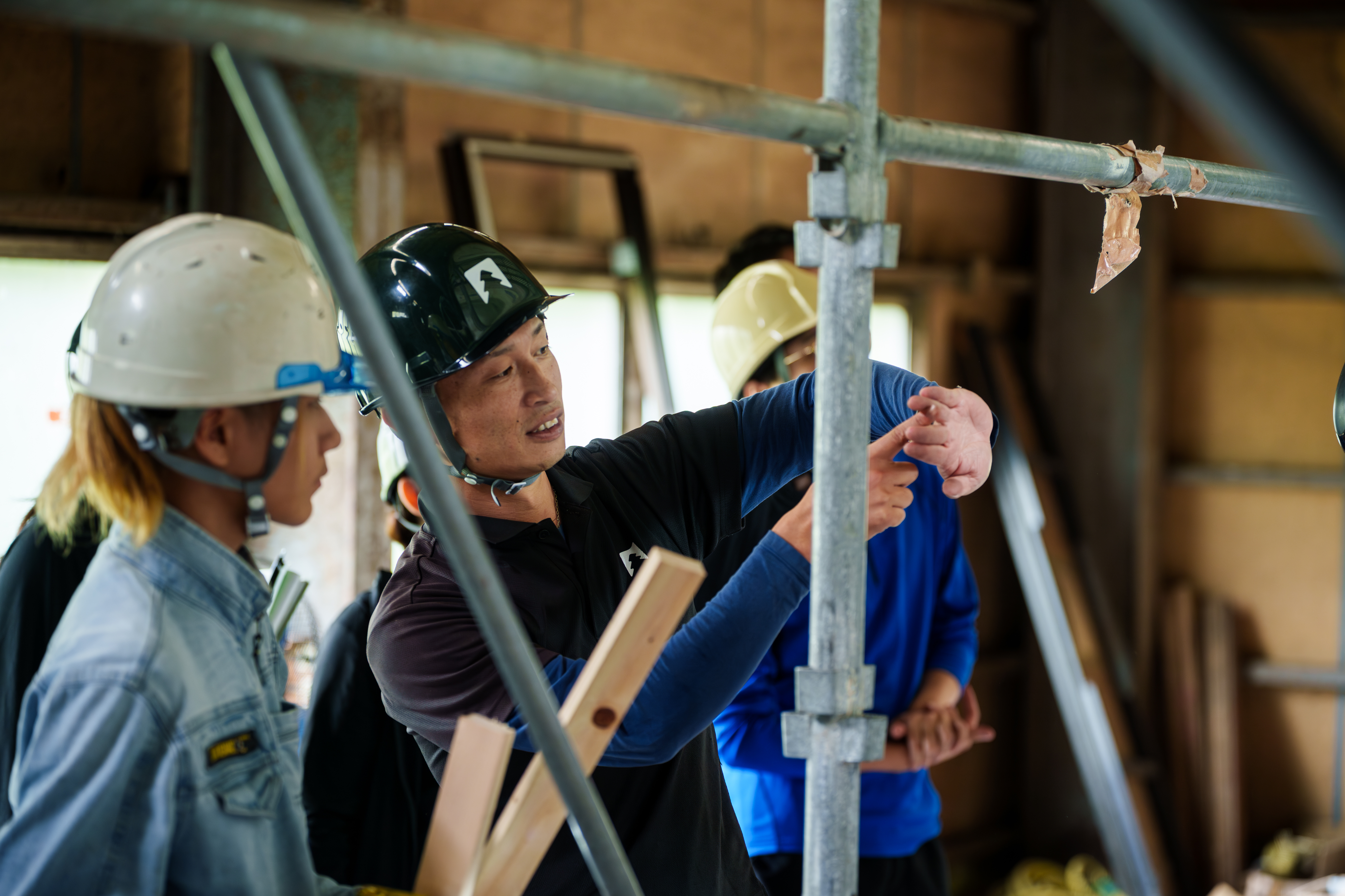 2021年より、国と連携して毎年「大工育成塾」を開講しています。自社の社員大工をはじめ入職して日の浅い若手大工さんを中心に参加いただいております。年に1度開催される「全国集合研修」に於いても全国各地の団体の中で弊社の大工チームが常に最大規模を誇るほど注力している取組みです。地域の建築・建設会社、大工さんと強固な関係性を持つ弊社が中心となって連携し、地域の建築文化を守り発展させてまいります。