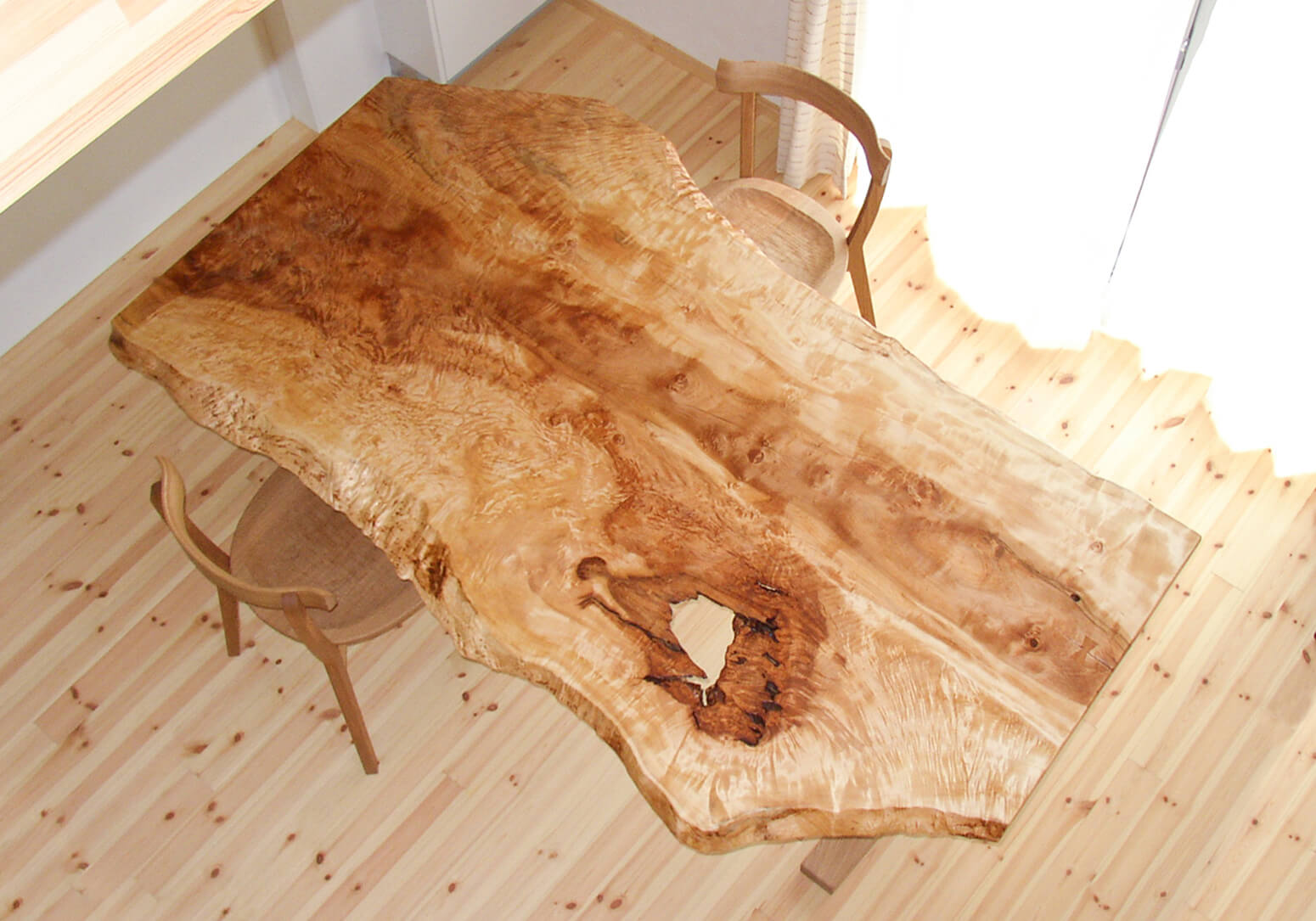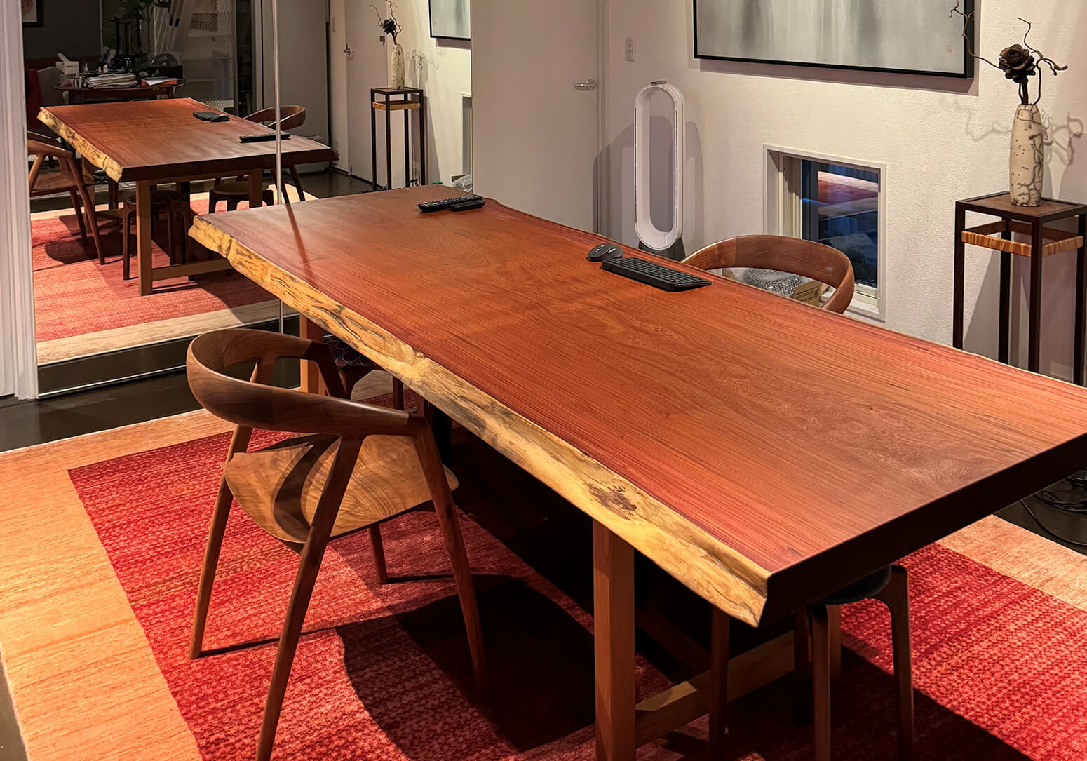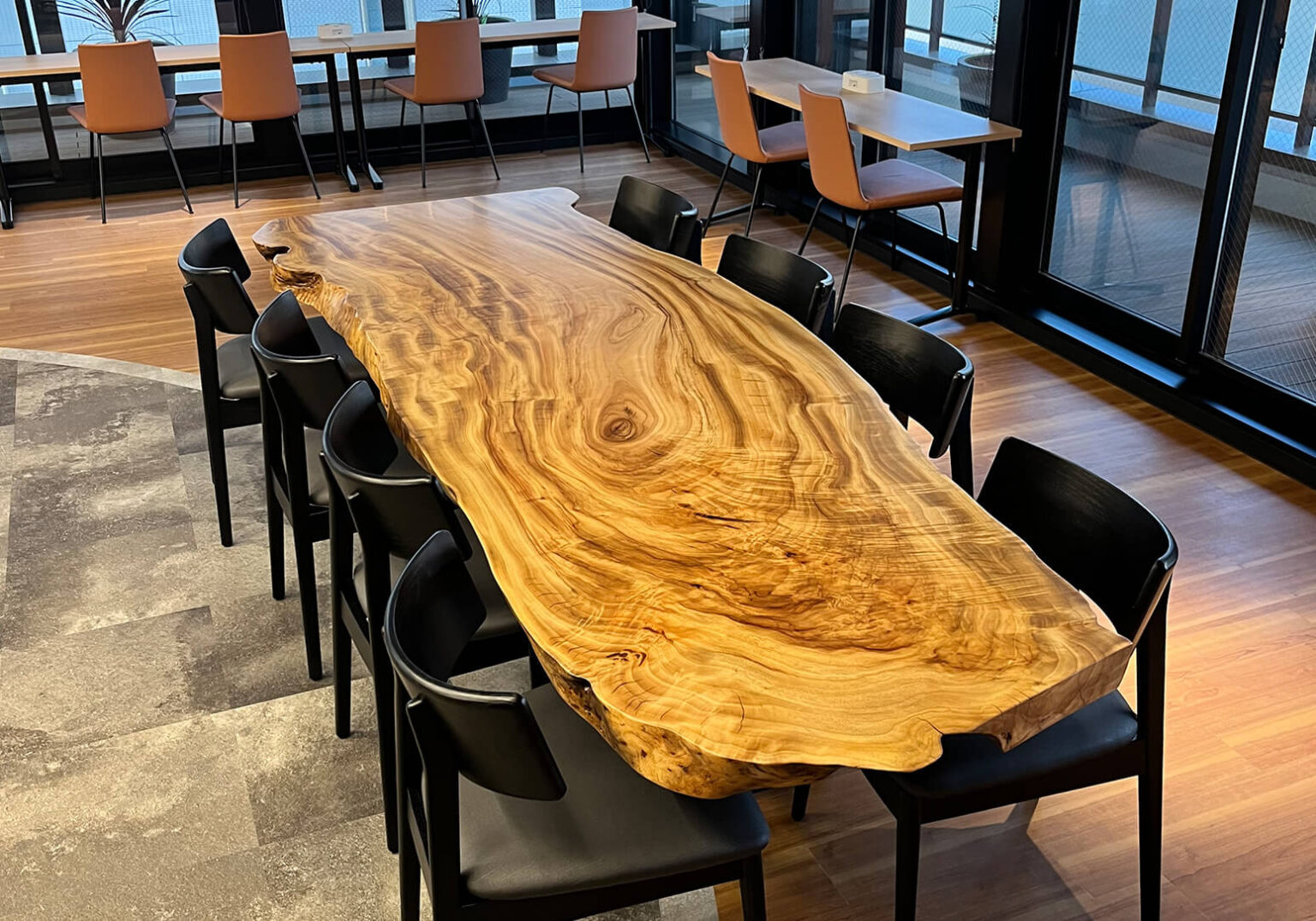 日本一の保有量を誇り、「ここには、無いものが、ある。」と言わしめるほど。幅広い銘木・木材ラインナップと、木と向き合って100年超で培ってきた確かな無垢材加工技術・品質で理想的な空間デザイン・調和を実現します。