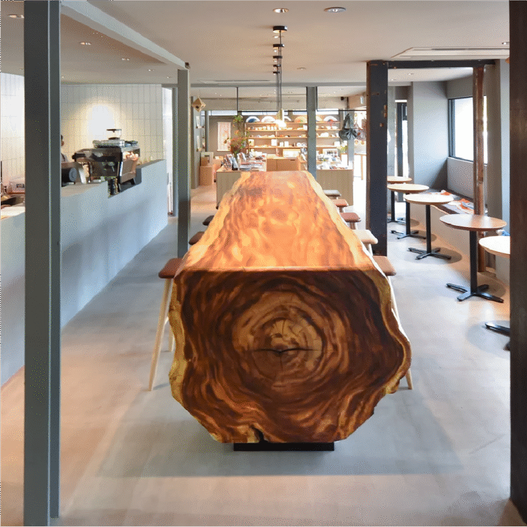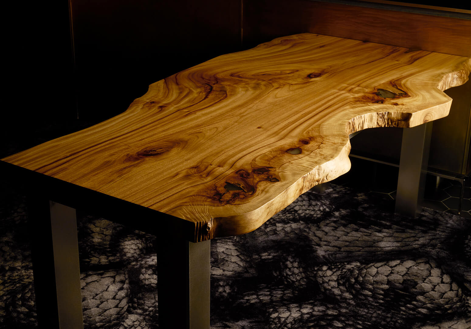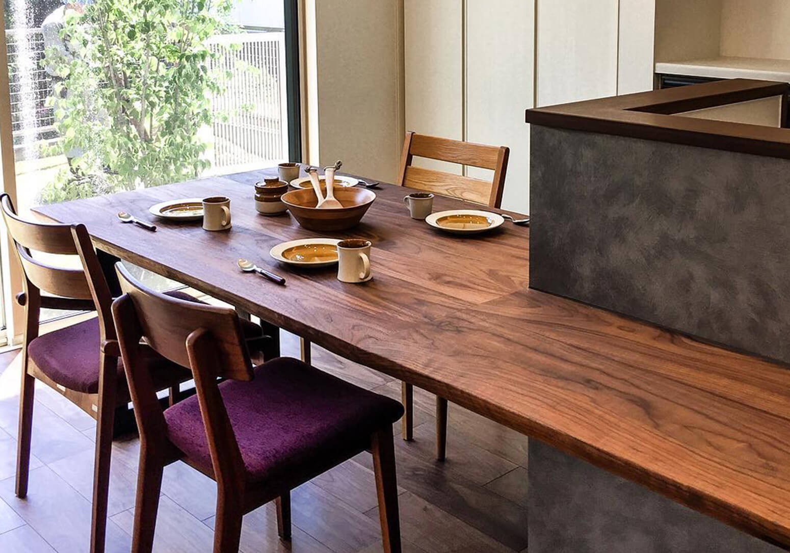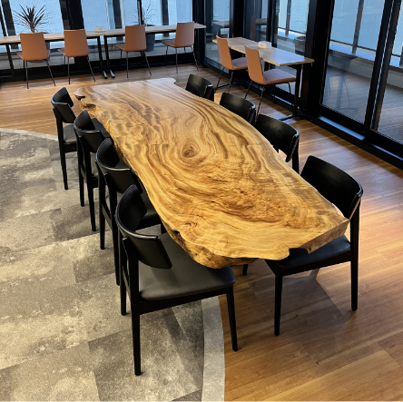 日本一の保有量を誇り、「ここには、無いものが、ある。」と言わしめるほど。幅広い銘木・木材ラインナップと、木と向き合って100年超で培ってきた確かな無垢材加工技術・品質で理想的な空間デザイン・調和を実現します。